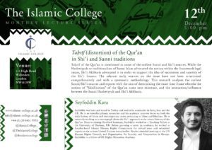 Monthly Lecture Series: Taḥrīf (distortion) of the Qur’an in Shiʿi and Sunni traditions
