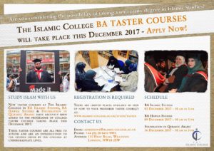 The Islamic College is pleased to announce new taster courses to give you a taste of what to expect, should you decide to take up the challenge of studying Islam at an academic level. Read more…